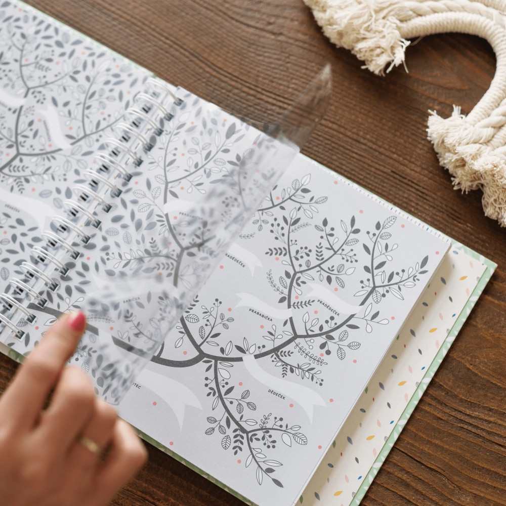 - Rodokmen s dekorační fólií, do kterého lze zapsat předky obou linií;